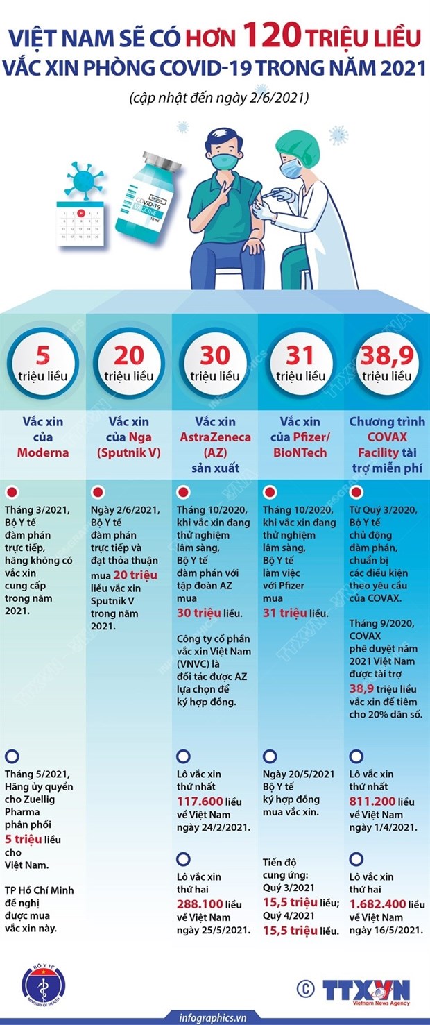 Như vậy, dự kiến trong năm 2021 Việt Nam sẽ có hơn 120 triệu liều vaccine phòng COVID-19. Trong đó, ngoài nguồn của Chương trình COVAX Facility, AstraZeneca, Việt Nam đã đàm phán để có thêm các nguồn vaccine khác.