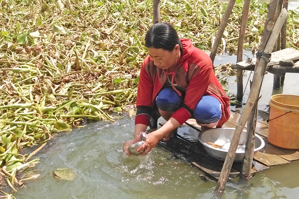 Chị Hồ Thị Lùng, ngụ ấp Bàu Sen, xã Khánh Hưng, huyện Vĩnh Hưng chia sẻ: “Tuyến kênh Bệnh Viện dài hơn 3km, mỗi mùa vụ, các loại thuốc hóa học của hàng trăm hécta lúa cặp 2 bên tuyến kênh xả xuống đây nhưng hơn 20 hộ dân sinh sống cặp tuyến kênh này đành chấp nhận lấy nguồn nước từ kênh lên lắng phèn để nấu ăn, uống, tắm, giặt. Vào mùa lũ, các bao bì, chai lọ thuốc bảo vệ thực vật trôi lềnh bềnh dưới lòng kênh, trong khi đây là nguồn nước sử dụng duy nhất của người dân. Những hộ nào có điều kiện hơn thì dùng máy bơm lấy nước từ dưới kênh lên lắng phèn, còn những hộ không có điều kiện phải dùng can, xô nhựa ra kênh lấy nước về sử dụng, thậm chí nhiều người còn tắm giặt ngay tại kênh”.