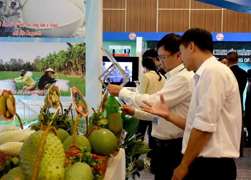 Truy xuất nguồn gốc giúp người tiêu dùng an tâm về tính minh bạch của sản phẩm từ lúc sản xuất đến tiêu thụ. Trong ảnh: Sản phẩm trưng bày tại một triển lãm ở TP Cần Thơ.