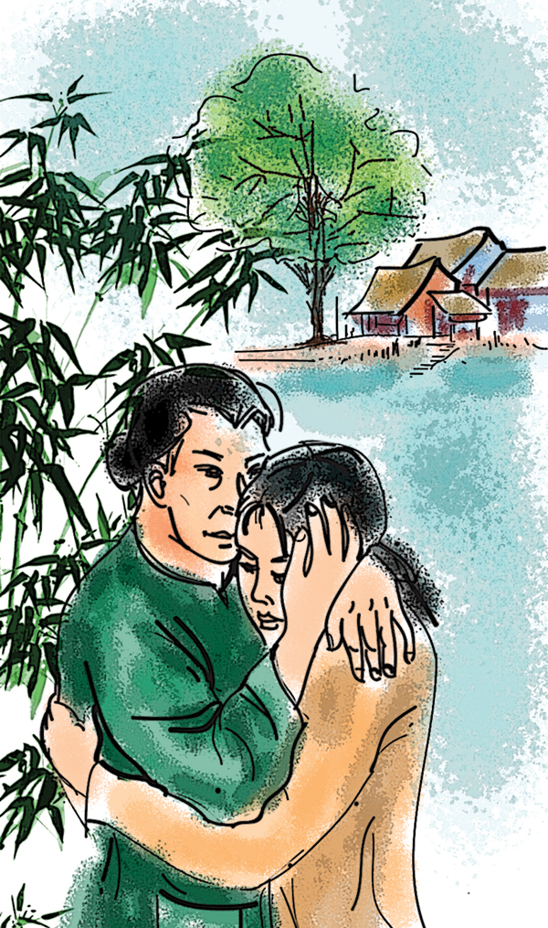 Mẹ Liên bước chậm rãi vào nhà, giở cái giỏ đầy ắp rau trái miệt đồng và loai choai hai con cá lóc, đặt cạnh bộ bàn ghế ở trước hàng ba; rồi nhìn về phía cuối lũy tre làng đầu ngõ, trông chờ bóng nhỏ quen thuộc. Cánh đồng quê bát ngát đang chuyển sang màu vàng nhạt, gió vẫn nhẹ lùa làm chao từng cuộn sóng lan dài trên những thảm lúa vàng xanh. Mẹ quay vào nhà. Ngôi nhà im ắng kể từ khi Liên lên thành phố học, bữa nay chợt có tiếng vang sột soạt bên hè, rồi giọng nói của Liên khẽ vọng lên. Mẹ mở chốt cửa sau nhìn ra, thấy có đôi chim non đang tung tăng, làm duyên với ngọn gió đồng đậm mùi cây lúa. Liên quay lại nhìn, và Vy cũng thế.