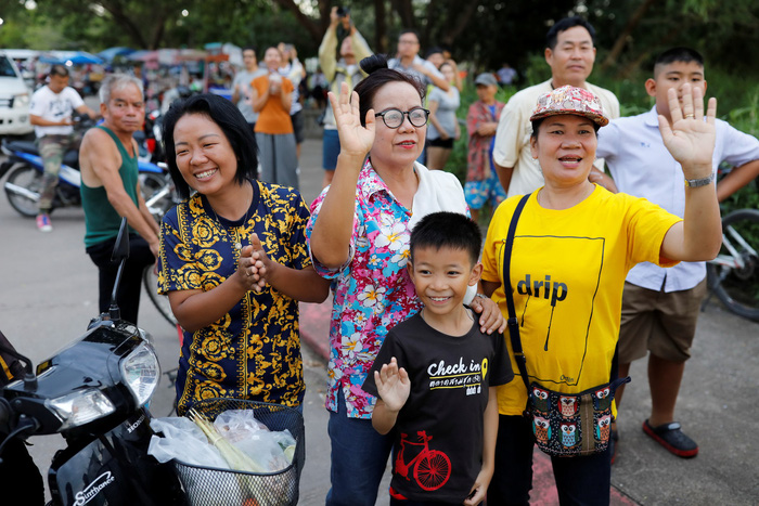 Người dân Thái Lan vui mừng khi biết chiến dịch giải cứu người thành công mỹ mãn - Ảnh: Reuters