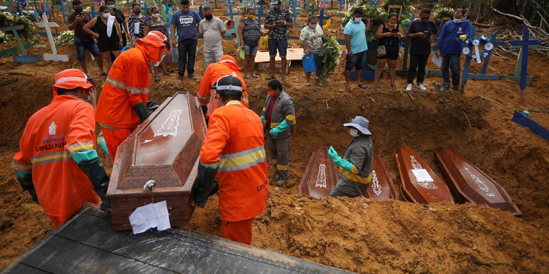 Manaus, thủ phủ bang Amazonas, đã bắt đầu đào các hố chôn tập thể cho nạn nhân tử vong vì Covid-19. Các nhà tang lễ lo ngại họ sẽ hết quan tài gỗ trong những ngày tới.