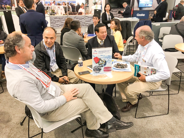 Ông Lê Thanh Thuấn - Chủ tịch Tập đoàn Sao Mai gặp gỡ các đối tác tại Hội chợ BOSTON 2018.