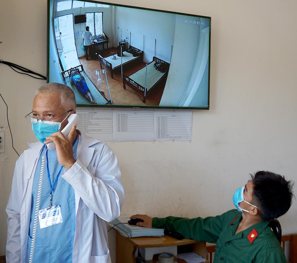 Vượt qua những khó khăn, nỗi lo về nguy cơ phơi nhiễm với vi-rút SARS-CoV-2, các “chiến sĩ blouse trắng” là những người lính xung kích trên mặt trận phòng, chống dịch. Nhiệm vụ của mỗi kíp trực là chăm sóc chu đáo, nắm rõ tình hình sức khỏe, đo thân nhiệt 2 lần/ngày. Bác sĩ không chỉ là người tận tình theo dõi sức khỏe mà còn xoa dịu tâm lý, trò chuyện, động viên người được cách ly trong khu vực mình phụ trách để mọi người an tâm, thoải mái hơn. Điện thoại được gắn ở mỗi phòng giúp việc liên lạc, kết nối với cán bộ y tế thuận tiện hơn.