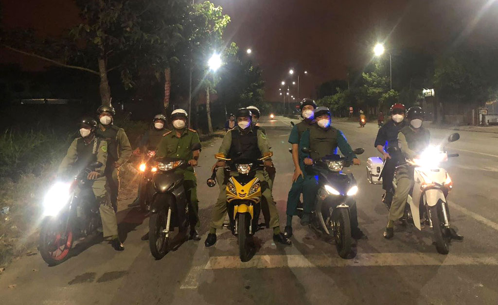 Dân quân Nguyễn Thanh Duy (người lái xe, thứ 2, từ phải qua) cùng các lực lượng tuần tra góp phần giữ gìn an ninh, trật tự trong Tuần Văn hóa - Du lịch tỉnh Long An năm 2022