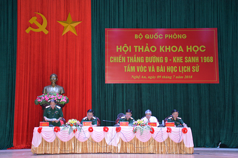 Báo cáo đề dẫn tại hội thảo, Thượng tướng Nguyễn Trọng Nghĩa, Ủy viên Trung ương Đảng, Ủy viên Quân ủy Trung ương, Phó Chủ nhiệm Tổng cục Chính trị Quân đội nhân dân Việt Nam khẳng định, chiến thắng Đường 9 – Khe Sanh là biểu tượng sáng ngời của ý chí kiên cường, tinh thần quật khởi, quyết tâm chiến đấu, hy sinh vì nền độc lập, tự do của toàn Đảng, toàn dân, toàn quân ta trong cuộc kháng chiến chống Mỹ, cứu nước. Với chiến dịch Đường 9 – Khe Sanh, lần đầu tiên trong cuộc kháng chiến chống Mỹ cứu nước, quân dân ta mở chiến dịch tiến công hiệp đồng quân binh chủng, đột phá trực tiếp vào tuyến phòng ngự mạnh của quân Mỹ, đánh bại các sư đoàn thủy quân lục chiến, kỵ binh không vận của quân đội viễn chinh Mỹ, buộc chúng phải tháo chạy khỏi Khe Sanh.