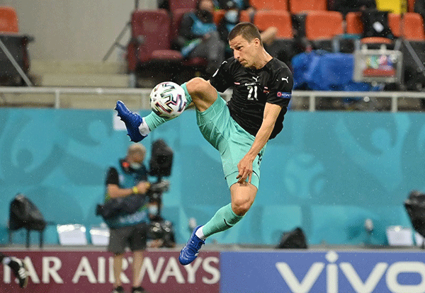 Pha đệm bóng ghi bàn cho tuyển Áo của Lainer. Ảnh; Reuters