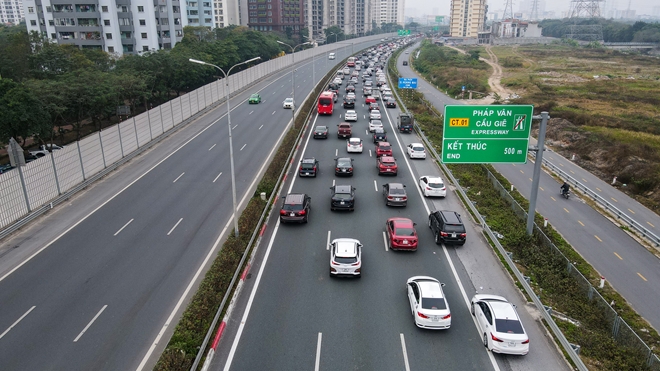 Khoảng 17 giờ, cao tốc Pháp Vân-Cầu Giẽ ùn tắc kéo dài nhiều kilômét từ nút giao với đường Vành đai 3 tới xã Ngũ Hiệp (huyện Thanh Trì). Tại nút ra cao tốc Pháp Vân-Cầu Giẽ, hướng vào đường gom Pháp Vân, mật độ giao thông bất ngờ tăng cao, các phương tiện rất khó khăn. Tương tự, tại đường Võ Chí Công hướng từ cầu Nhật Tân về trung tâm thành phố, lưu lượng phương tiện tăng nhanh, dù chưa xảy ra tắc đường nhưng các phương tiện di chuyển chậm. Bên cạnh đó, tại tuyến đường Giải Phóng-Ngọc Hồi, nơi có hai bến xe lớn là Giáp Bát và Nước Ngầm, nhiều người dân đổ về cùng một thời điểm, khiến trục đường này cũng xảy ra ùn tắc cục bộ.