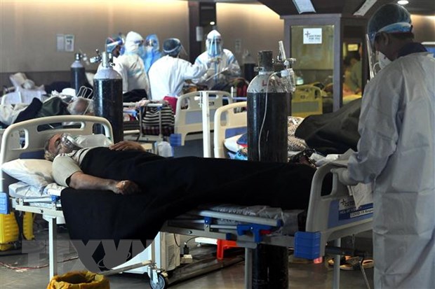 Điều trị cho bệnh nhân nhiễm COVID-19 tại bệnh viện ở New Delhi, Ấn Độ, ngày 8/5/2021. (Nguồn: THX/TTXVN)