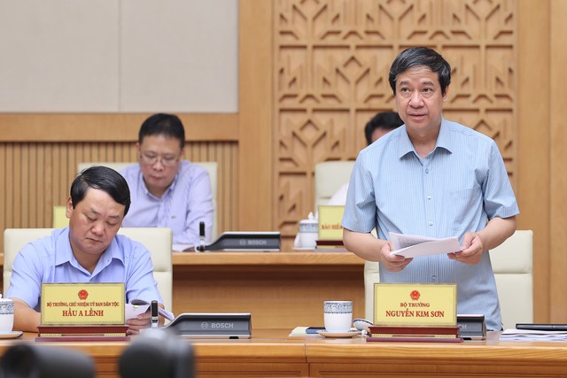 | Bộ trưởng Bộ GD&ĐT Nguyễn Kim Sơn trình bày Tờ trình của Bộ GD&ĐT về đề nghị xây dựng Luật Nhà giáo - Ảnh: VGP |