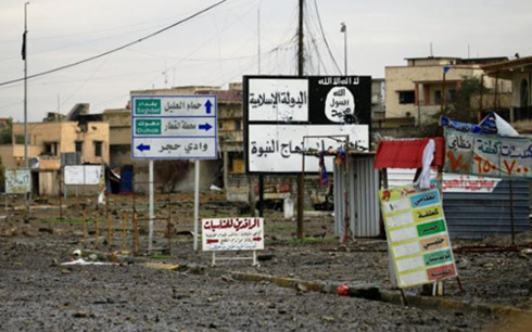 Các tấm biển của IS ở Mosul vào tháng 3/2017. Ảnh: Reuters