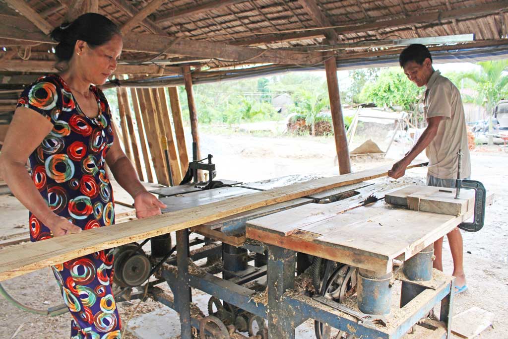 Gia đình bà Trần Thị Chiều, ngụ ấp Ông Nhan Đông, xã Bình Hiệp, thị xã Kiến Tường nhờ vay vốn được 50 triệu đồng đầu tư nuôi bò và mua máy cưa nên kinh tế gia đình ổn định và vươn lên thoát nghèo bền vững