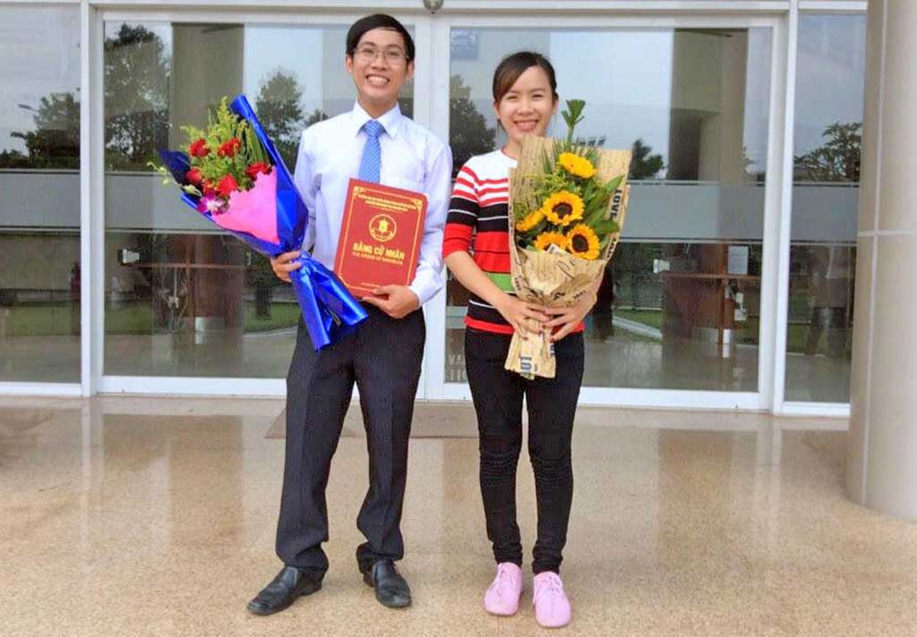 Em Nguyễn Tiến Đạt và em gái Nguyễn Thị Hồng Nhung trong lễ tốt nghiệp đại học