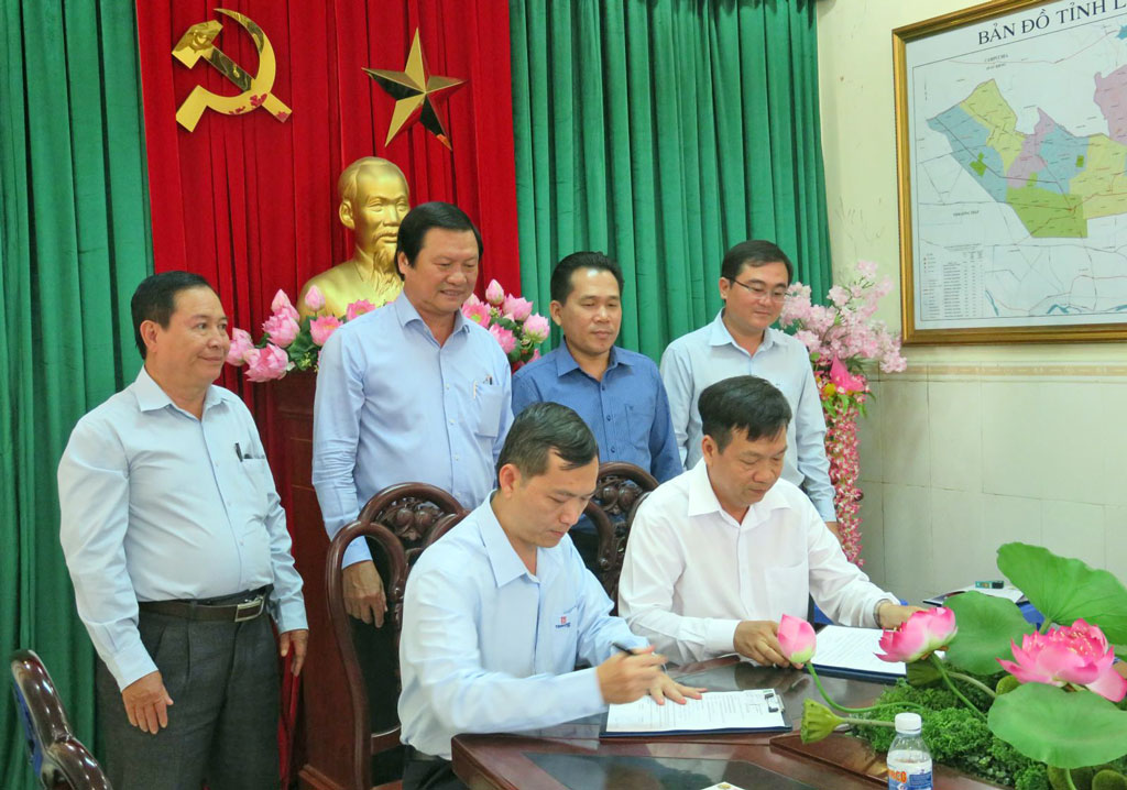 Lãnh đạo Sở Công Thương Long An và Đồng Nai chứng kiến ký kết biên bản ghi nhớ tiêu thụ hàng hóa nông sản giữa Ban Quản lý chợ Dầu Giây và doanh nghiệp tại Long An