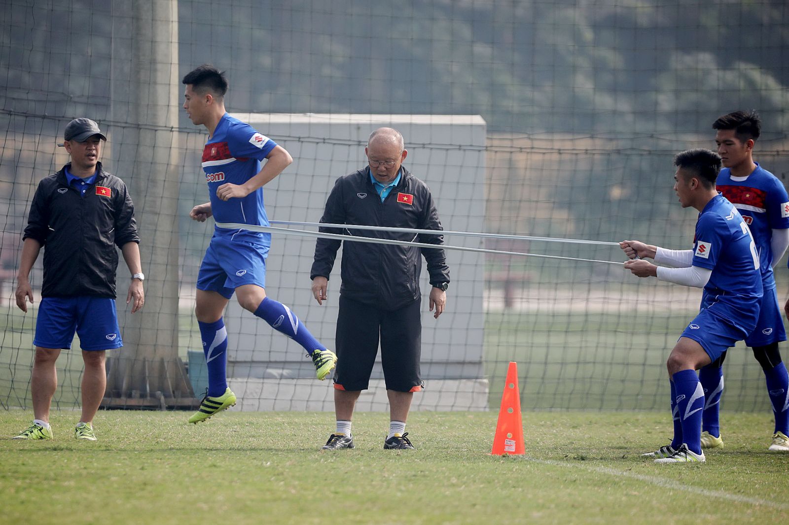 HLV Park Hang Seo cùng các học trò nỗ lực tập luyện chuẩn bị cho VCK U-23 châu Á. Ảnh: Nam Khánh
