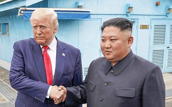 Cái bắt tay Trump (trái) - Kim tại biên giới liên Triều, tháng 6-2019. Ảnh: Reuters