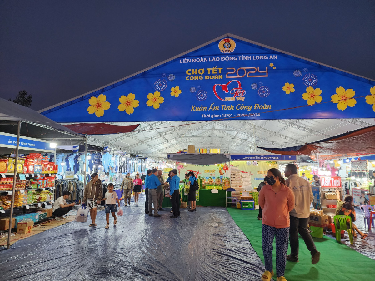 Nổi bật nhất là Chương trình Chợ tết CĐ tại Khu công nghiệp Thuận Đạo, huyện Bến Lức, tỉnh Long An diễn ra từ ngày 15 đến 20/01/2024 với hơn 50 gian hàng thương mại, ẩm thực có giá ưu đãi dành cho ĐV, NLĐ. Trong đó, 40 gian hàng khu thương mại và 10 gian hàng khu ẩm thực với nhiều mặt hàng đa dạng như nhu yếu phẩm, lương thực, thực phẩm, quần áo, giày, dép, ba lô, túi xách,... Tại khu vực Chợ tết CĐ, LĐLĐ tỉnh tổ chức Hội thi Tiếng hát công nhân, viên chức, lao động (CNVCLĐ); biểu diễn nghệ thuật của Đoàn Nghệ thuật Cải lương Long An; tặng quà tết cho ĐV, NLĐ có hoàn cảnh khó khăn;...