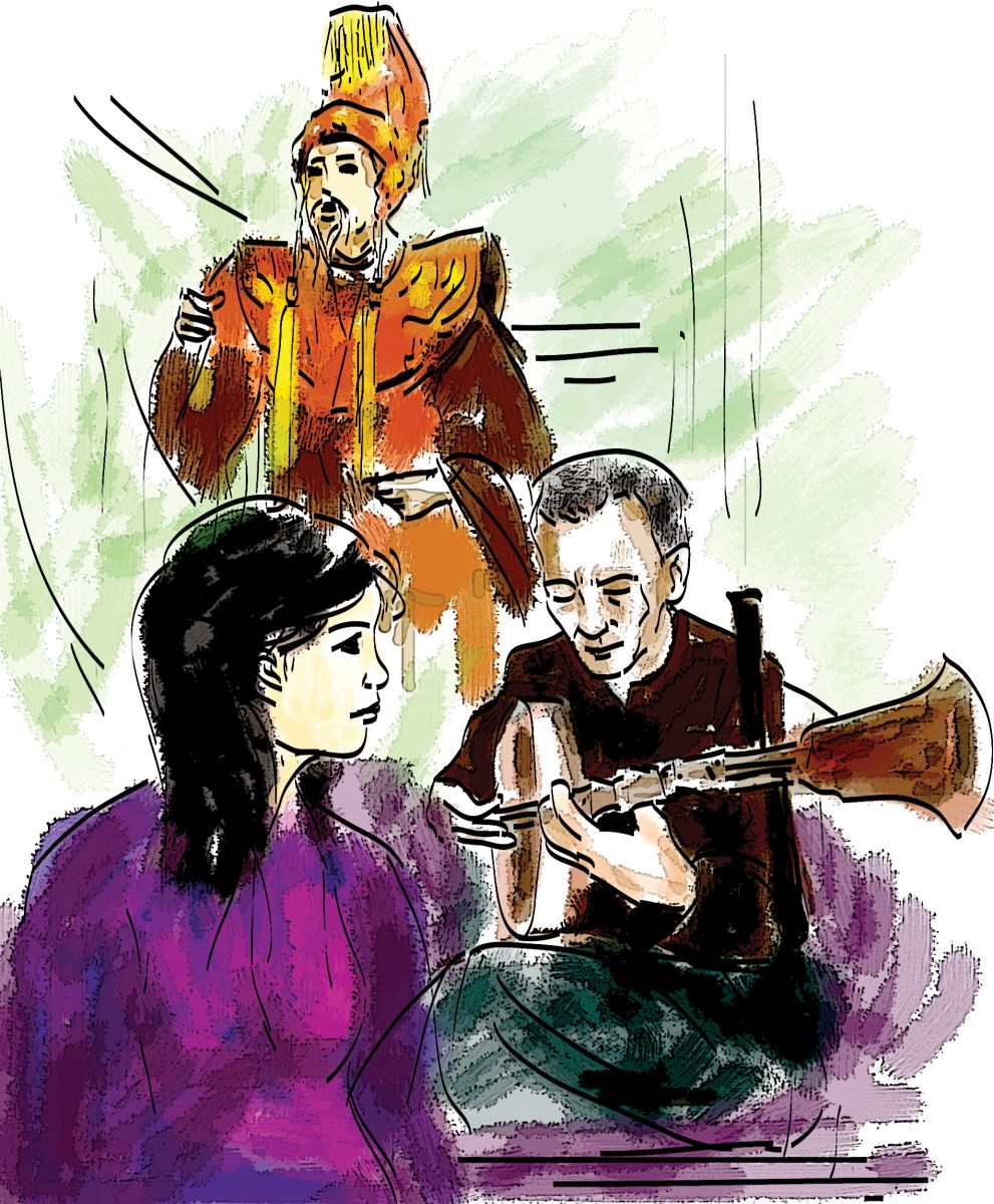 Những giọng ca mùi mẫn, nhịp nhàng thuần thục đều về phố thị bươn chải vào các phòng trà, ca đám tiệc. Bởi vậy gánh hát Hoa Liên giờ chỉ còn lưa thưa vài chiếc bóng. Tiếng đờn kìm của ông Sáu hôm nay buồn quá. Mấy chục năm theo nghề có bao giờ nghe ông nhấn nhá những chữ đờn đứt gan đứt ruột như vầy đâu. Nét điêu luyện của ngón đờn tài hoa đã phiêu bạt với gánh này từ khi ông còn thanh niên, đến giờ mái tóc ông đã nhiều sợi trắng. Không gian như yên lặng hẳn đi. Trong tiếng tơ lòng buông nhả ấy, có tiếng réo rắt nỉ non, luyến lưu, giận hờn, oán trách... Lê ngồi nghe ông đờn như muốn nuốt trọn từng tiếng buồn phát ra. Đến khi dứt song loan, ông Sáu mới bùi ngùi nhìn chữ nhấn cuối cùng của bản phụng hoàng. Lê ngước nhìn ông, hỏi lại: