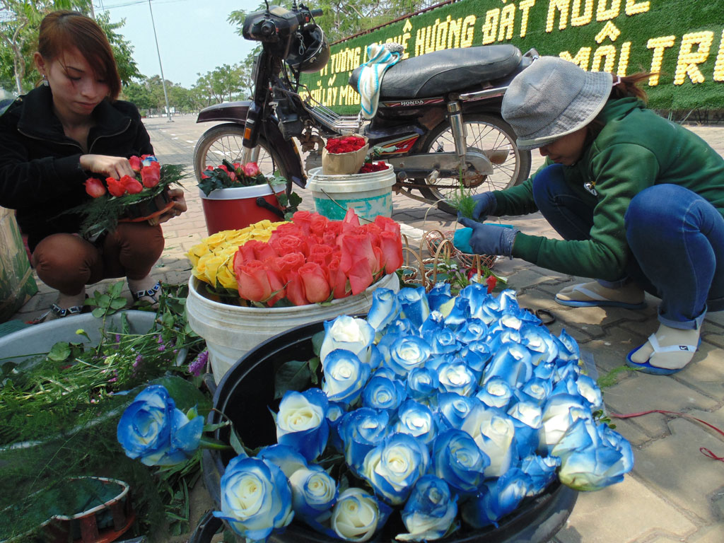 Ngoài các cửa hàng hoa, các bạn trẻ, sinh viên cũng tranh thủ lấy hoa về bán để có thêm thu nhập trong mùa Valentine