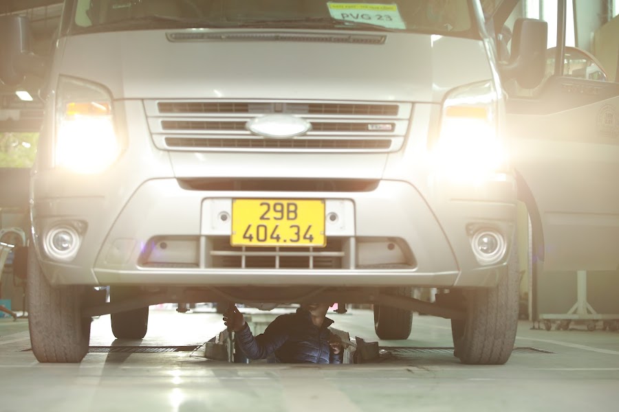 | Đăng kiểm viên thực hiện kiểm định xe. |