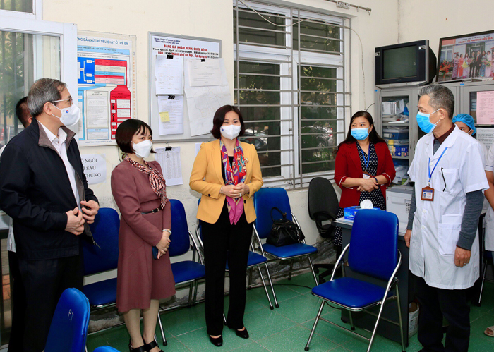 | Phó Bí thư Thường trực Thành ủy Hà Nội Nguyễn Thị Tuyến kiểm tra công tác phòng, chống dịch COVID-19 tại Trạm y tế phường Liễu Giai |