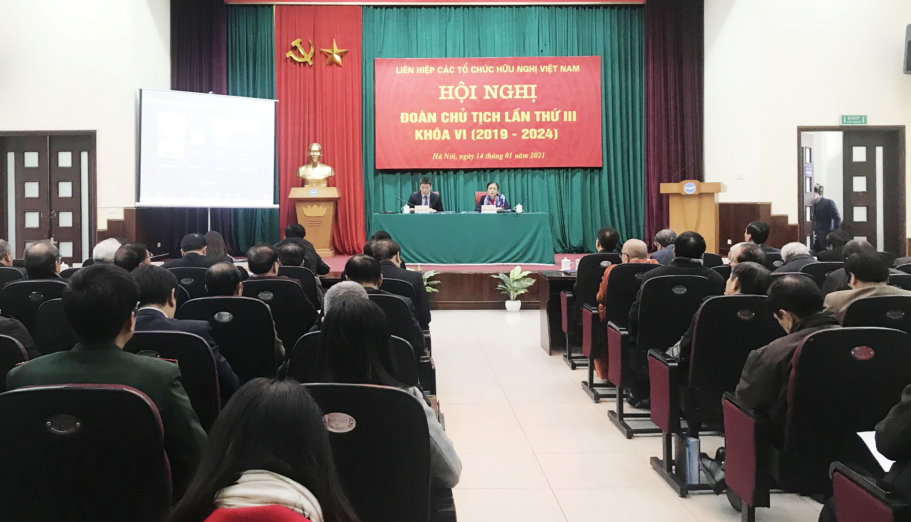 Ngày 14/1, tại Hà Nội, Đoàn Chủ tịch Liên hiệp các tổ chức hữu nghị Việt Nam khóa VI tổ chức Hội nghị lần thứ III (2019 – 2024). Bí thư Đảng đoàn, Chủ tịch Liên hiệp các tổ chức hữu nghị Việt Nam Nguyễn Phương Nga chủ trì Hội nghị.