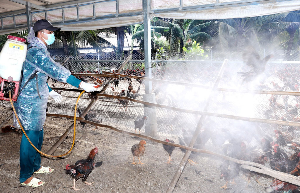 Năm nào cũng vậy, vào đầu mùa mưa, bão, chị Trần Thị Cẩm Hồng (xã Phước Đông, huyện Cần Đước) lại tiến hành vệ sinh, sát trùng, khử khuẩn chuồng trại chăn nuôi gà. Theo kinh nghiệm của chị Hồng, thời tiết ẩm ướt ảnh hưởng đến sinh trưởng và phát triển của đàn gà. Vì vậy, chị chủ động phòng dịch, tiêm phòng vắc-xin đầy đủ cho đàn gà gần 1.000 con của gia đình.