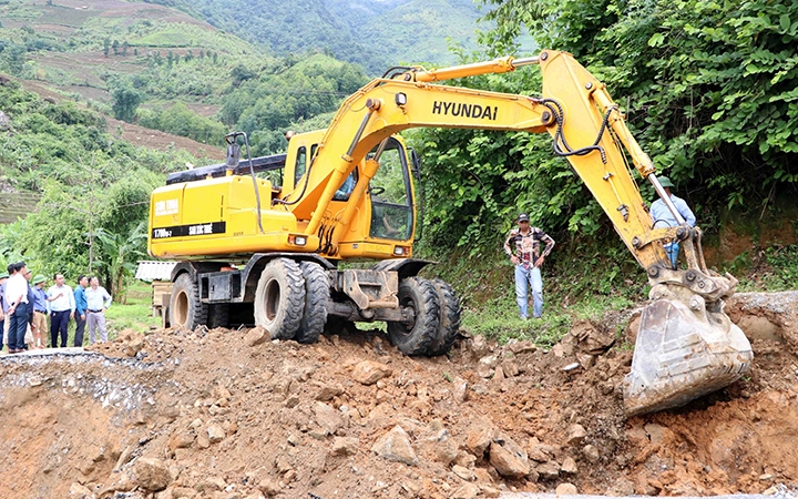 Lực lượng chức năng tỉnh Lai Châu khắc phục hậu quả do mưa lớn sáng 11-6. Ảnh: Công Tuyên (TTXVN)