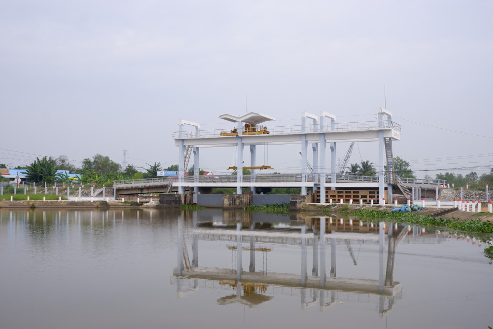 Cống Nhựt Tảo (huyện Tân Trụ) đã được đóng để ngăn mặn, trữ ngọt, phục vụ sản xuất