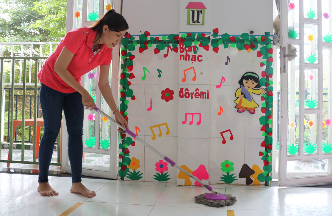 Tại Cơ sở Mầm non tư thục Tuổi Thần Tiên (xã An Thạnh, huyện Bến Lức), việc chăm sóc và phòng bệnh cho trẻ được quan tâm. Ngoài tuyên truyền trực tiếp đến phụ huynh, cơ sở có bảng tuyên truyền các biện pháp phòng bệnh theo mùa. Giáo viên lau sàn phòng học mỗi ngày bằng dung dịch khử khuẩn; ngâm vật dụng, đồ chơi của trẻ bằng hóa chất khử khuẩn.