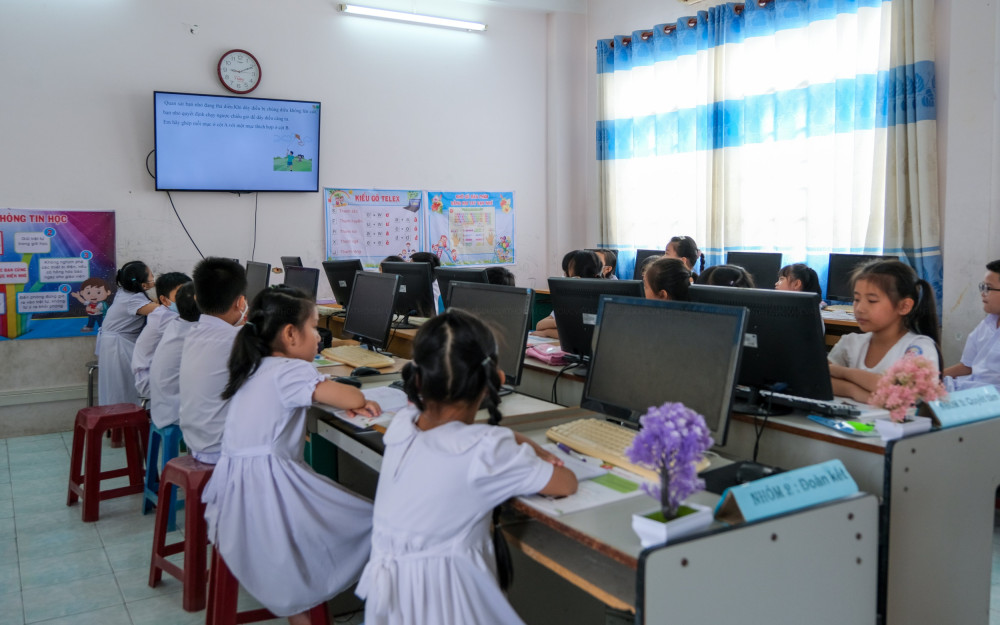 Năm học 2022-2023, quận Bình Thủy có 13 trường tiểu học và 4 điểm lẻ sẽ triển khai giảng dạy môn Tin học lớp 3. Với việc thực hiện mô hình Trường ÐHÐM trong nhiều năm qua, hiện nay, cơ sở vật chất và đội ngũ giáo viên trên địa bàn quận đáp ứng 100% yêu cầu giảng dạy môn học này. Bà Lê Thị Hường, Phó trưởng Phòng Giáo dục và Ðào tạo quận Bình Thủy, cho biết: “Mô hình Trường ÐHÐM sát với thực tiễn, sát với mục tiêu Chương trình GDPT mới, trong đó ưu tiên 2 môn Tin học và Ngoại ngữ. Ngành Giáo dục quận đã tham mưu địa phương chuẩn bị kịp thời đội ngũ và cơ sở vật chất đảm bảo thực hiện chương trình mới”. Năm học này, quận Bình Thủy có 13 giáo viên tham gia tập huấn và giảng dạy Tin học lớp 3 mới, với 13/13 trường và 4 điểm lẻ đều được trang bị tối thiểu 1 phòng máy tính riêng. Trong đó, hơn một nửa số trường được trang bị phòng máy theo tiêu chuẩn 35 máy/phòng.