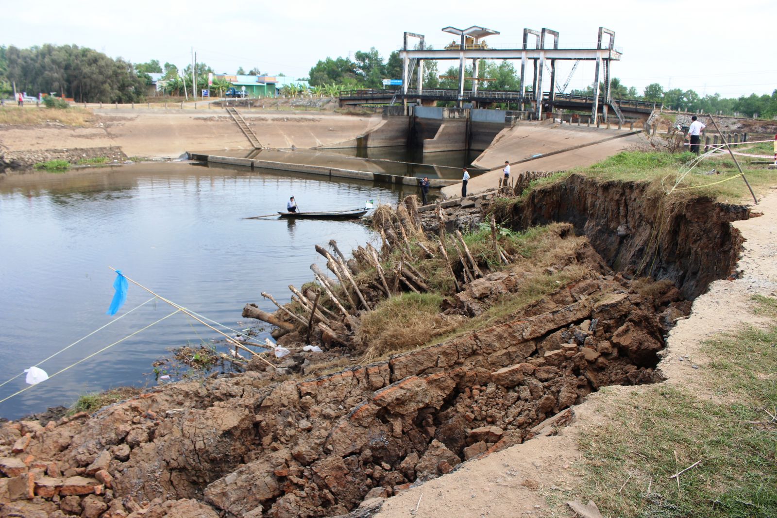 Còn huyện Tân Trụ, Trưởng phòng Nông nghiệp và Phát triển nông thôn, Phó ban Chỉ huy PCTT&TKCN huyện - Đoàn Văn Hoàng cho biết: “Tình hình sạt lở bờ sông, kênh, rạch trên địa bàn huyện trong năm 2019 xảy ra có chiều hướng ngày càng phức tạp, khó lường, mức độ nguy hiểm và nghiêm trọng hơn. Nguyên nhân sạt lở là do tác động của dòng chảy, sự thiếu hụt phù sa bồi đắp từ thượng nguồn, phương tiện thủy có trọng tải lớn lưu thông với mật độ dày; việc neo đậu tàu thuyền sai quy định; các công trình nhà ở, kho bãi xây dựng lấn chiếm lòng dẫn trên các tuyến sông, kênh, rạch làm gia tăng tải trọng trên nền đất yếu. Năm 2019, trên địa bàn huyện có 5 điểm sạt lở nghiêm trọng tại các xã: Nhựt Ninh, Tân Phước Tây và thị trấn Tân Trụ làm ảnh hưởng đến đời sống, sự an toàn của người dân. Ngoài ra, mưa giông làm tốc mái 48 căn nhà, ước thiệt hại 34 triệu đồng. Năm 2019, tỉnh đầu tư xây dựng mới 2 cống trên tuyến đê bao đoạn 2 ven sông Vàm Cỏ Tây thuộc xã Nhựt Ninh, kinh phí 3 tỉ 350 triệu đồng. Huyện, xã đã đầu tư nạo vét 32 hạng mục công trình kênh, rạch nội đồng với tổng kinh phí hơn 10 tỉ đồng nhằm bảo đảm tưới tiêu, ngăn mặn, phòng, chống thiên tai, phục vụ sản xuất, nước sinh hoạt cho người dân”.