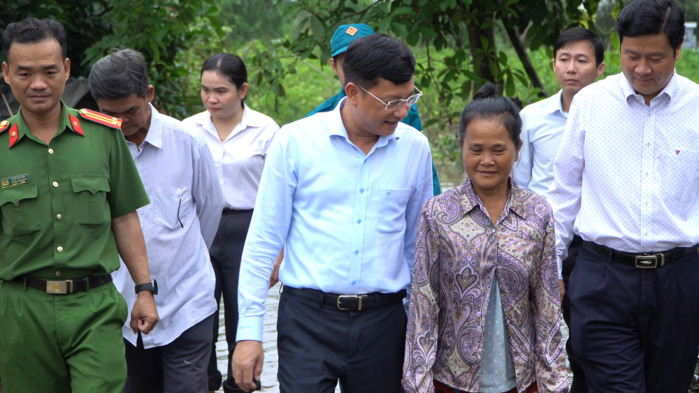 Lãnh đạo xã Đức Huệ thăm hỏi gia đình bị thiệt hại do lũ