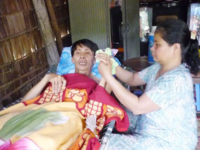 Từ khi phát bệnh đến nay, chú Tia chỉ ăn được cháo và đã sụt hết 5 kg. Nghe nói về bệnh tình của mình, chú Tia giọng thều thào: “Tôi mong được khỏe mạnh để còn lo cho vợ con. Tội nghiệp con gái tôi, nó còn nhỏ quá, vợ tôi thì nay đau mai yếu”. Cô Ngọt bị sưng khớp chân và cao huyết áp đã 3 năm nay. Mỗi khi đi nhiều là đôi chân trở nên đau nhức khiến cô không ngủ được và cứ cách vài ngày là cô Ngọt lại bị cao huyết áp. Chính vì sức khoẻ cô Ngọt không tốt nên lúc chú Tia nằm viện, cô Mum phải theo phụ chăm sóc. Cô Mum nói: “Lúc ở Bệnh viện Chợ Rẫy được 1 tuần thì em dâu tôi bị lên máu hết 3 lần”.