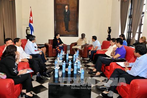 Phó Chủ tịch Quốc hội Tòng Thị Phóng và Đoàn đại biểu Quốc hội Việt Nam trong buổi thăm làm việc với Hội đồng nhân dân tỉnh Matanzas (Cuba). Ảnh: Vũ Lê Hà-TTXVN