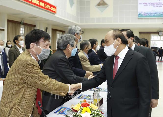 Phát biểu tại buổi gặp mặt, Chủ tịch nước Nguyễn Xuân Phúc hoan nghênh tỉnh Quảng Nam đã tổ chức nhiều hoạt động có ý nghĩa trong dịp kỷ niệm 550 năm danh xưng Quảng Nam. Chủ tịch nước đánh giá cao tỉnh Quảng Nam thời gian qua đã phát triển toàn diện, từ một địa phương nghèo nhất nước trở thành 1 trong 14 địa phương đóng góp cho ngân sách Trung ương từ cách đây vài năm. Điều đó khẳng định, dưới sự lãnh đạo của Đảng, tỉnh có hướng phát triển đúng đắn, khơi dậy được tinh thần tự lực, tự cường của người dân xứ Quảng. Cơ sở vật chất, hạ tầng kinh tế ngày càng được hoàn thiện.