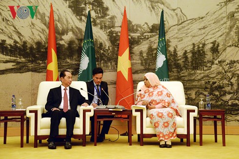 Bà Quyền Chủ tịch cho biết, vừa qua AU đã thông qua chiến lược phát triển vì lợi ích và sự thịnh vượng của người dân Châu Phi; các nước châu Phi đã ký hiệp định thành lập khu vực tự do châu Phi và nghị định thư chuyển dịch tự do. Bà cũng đánh giá cao quan hệ hợp tác với Việt Nam, xác định những lĩnh vực ưu tiên như chế biến, nông nghiệp, khai khoáng, du lịch…, mong muốn Việt Nam là cầu nối với Châu Á, đặc biệt là các nước Đông Nam Á.