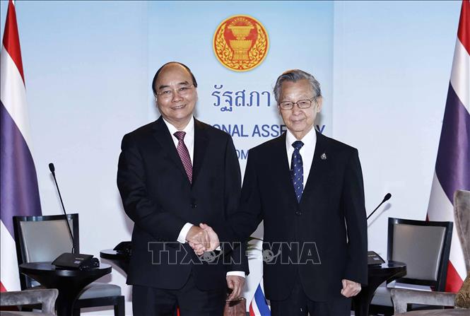Chủ tịch nước Nguyễn Xuân Phúc bày tỏ ấn tượng về những thành tựu phát triển vượt bậc của Thái Lan, nhanh chóng mở cửa và phát triển kinh tế - xã hội, trở thành điểm du lịch hút khách lớn thứ 4 trên thế giới. Chủ tịch nước cũng chúc mừng Thái Lan tổ chức thành công Hội nghị thường niên Diễn đàn Nghị viện châu Á – Thái Bình Dương lần thứ 30, cũng như đảm nhiệm thành công vai trò Chủ tịch Diễn đàn Hợp tác kinh tế châu Á-Thái Bình Dương (APEC) 2022. Chủ tịch nước Nguyễn Xuân Phúc bày tỏ vui mừng chứng kiến sự hợp tác chặt chẽ giữa Quốc hội hai nước thời gian qua, trong đó có kết quả thực chất của cuộc hội đàm trực tuyến giữa Chủ tịch Quốc hội Vương Đình Huệ và Chủ tịch Quốc hội Chuan Leekpai (tháng 8/2021). Chủ tịch nước Nguyễn Xuân Phúc cũng đánh giá cao những đóng góp tích cực của Chủ tịch Quốc hội Thái Lan đối với quan hệ hữu nghị và hợp tác giữa hai nước.