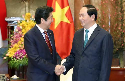 Chào mừng Ngài Thủ tướng Sin-dô A-bê cùng đoàn đại biểu cấp cao Chính phủ Nhật Bản sang thăm chính thức Việt Nam, Chủ tịch nước Trần Đại Quang bày tỏ vui mừng nhận thấy quan hệ đối tác chiến lược sâu rộng giữa hai nước đang phát triển mạnh mẽ, toàn diện và thực chất trên nhiều lĩnh vực với sự tin cậy cao về chính trị. Chủ tịch nước khẳng định, Việt Nam rất coi trọng quan hệ hợp tác toàn diện với Nhật Bản, coi đây là một trong những ưu tiên hàng đầu trong chính sách đối ngoại của Việt Nam.