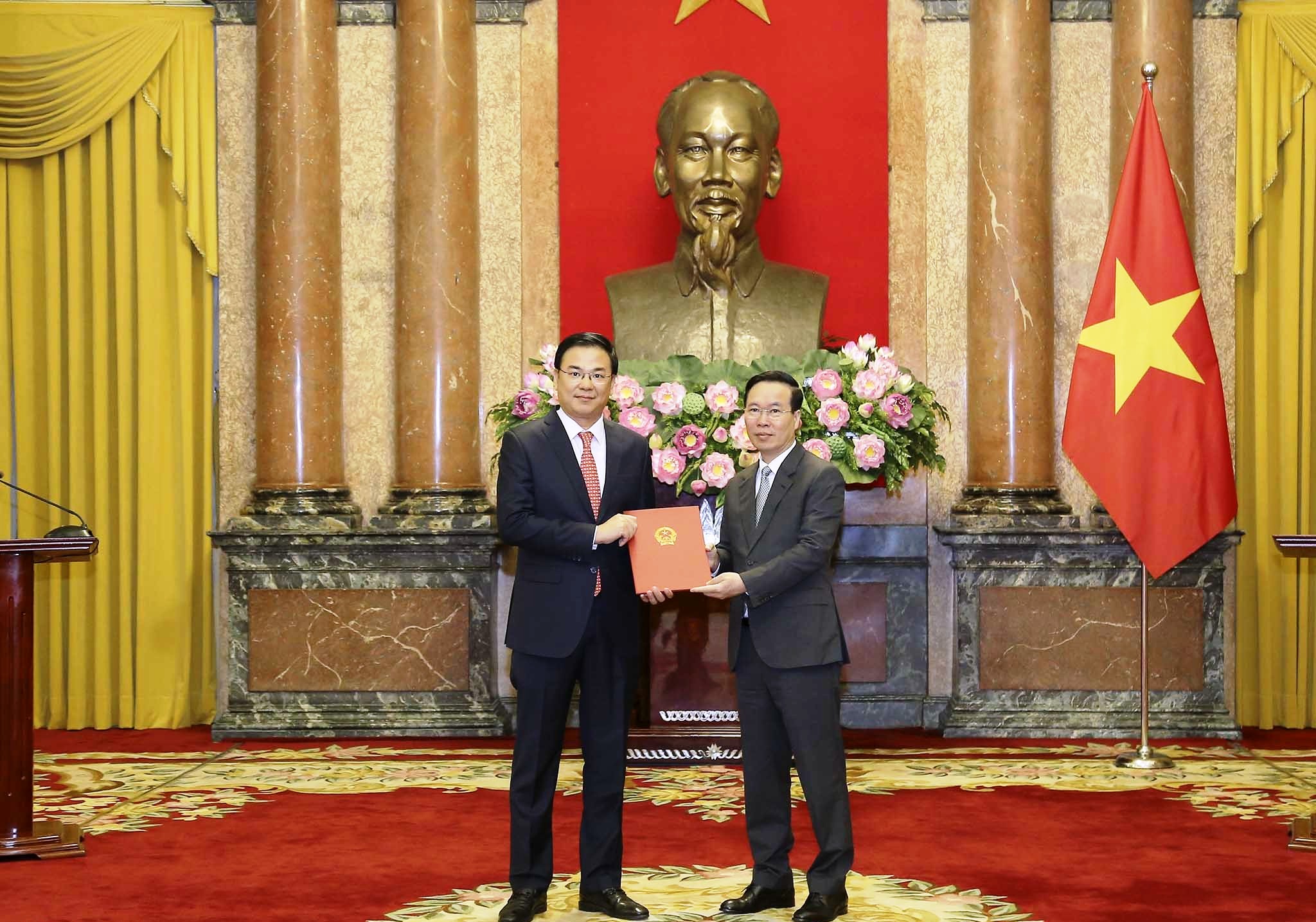 | Chủ tịch nước Võ Văn Thưởng trao quyết định bổ nhiệm ông Phạm Quang Hiệu, Thứ trưởng Bộ Ngoại giao, Chủ nhiệm Ủy ban Nhà nước về người Việt Nam ở nước ngoài, làm Đại sứ Việt Nam tại Nhật Bản, kiêm nhiệm Quần đảo Marshall nhiệm kỳ 2023-2026. |
