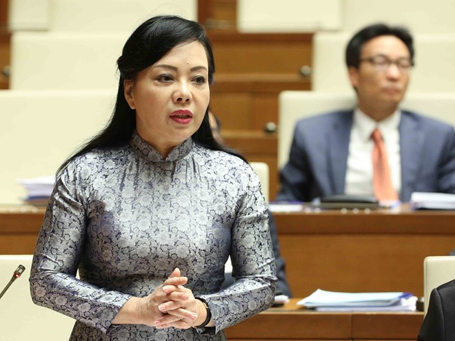Bộ trưởng Y tế Nguyễn Thị Kim Tiến trả lời trong phiên chất vấn sáng 1/11. (Ảnh: TTXVN)