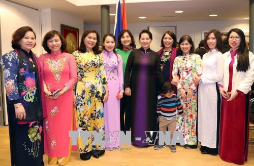 Chủ tịch Quốc hội cho biết, trong các cuộc tiếp xúc, gặp gỡ với lãnh đạo nước bạn đều nhận được những nhận xét tích cực về cộng đồng người Việt Nam. Chủ tịch Quốc hội đánh giá cao nỗ lực, đóng góp của cộng đồng với khoảng 20.000 người Việt Nam đang sinh sống, học tập, làm việc tại Hà Lan đã luôn đoàn kết, giúp đỡ nhau vượt khó khăn để ổn định cuộc sống, hòa nhập xã hội sở tại và có những đóng góp tích cực đối với đất nước; ghi nhận những nỗ lực của Hội người Việt Nam thành phố Den Haag trong việc tổ chức nhiều hoạt động bổ ích nhằm gắn kết cộng đồng, góp phần quảng bá hình ảnh đất nước con người Việt Nam, hưởng ứng nhiệt tình các phong trào hướng về quê hương đất nước. Hội đã phối hợp với Đại sứ quán Việt Nam tại Hà Lan tổ chức lớp học tiếng Việt cho con em kiều bào từ cuối năm 2017; chú trọng giáo dục ngôn ngữ, văn hóa, truyền thống dân tộc.