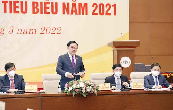 Chiều 21/3, tại Hà Nội, Chủ tịch Quốc hội Vương Đình Huệ đã gặp mặt các thầy thuốc trẻ tiêu biểu năm 2021 trên mặt trận phòng, chống đại dịch COVID-19.