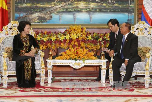 Chủ tịch Quốc hội Nguyễn Thị Kim Ngân cảm ơn Quốc hội, Chính phủ Campuchia quan tâm tạo điều kiện cho cộng đồng người Việt sinh sống, làm ăn góp phần xây dựng, phát triển Vương quốc Campuchia.