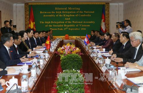 Hai chủ tịch quốc hội đã thông báo khái quát về tình hình kinh tế-xã hội và hoạt động của quốc hội mỗi nước. Hai bên cho rằng, trong bối cảnh thế giới và khu vực có nhiều biến động phức tạp, mối quan hệ đoàn kết giữa hai nước cần tiếp tục được củng cố và phát triển. Phía Việt Nam khẳng định trước sau như một luôn coi trọng và dành ưu tiên hàng đầu cho việc củng cố và tăng cường quan hệ láng giềng tốt đẹp, hữu nghị truyền thống, hợp tác toàn diện, bền vững lâu dài với Campuchia. Việt Nam và Campuchia có truyền thống đoàn kết, ủng hộ và giúp đỡ, luôn kề vai, sát cánh bên nhau, nhất là trong lúc khó khăn. Truyền thống tốt đẹp đó là niềm tự hào và là tài sản vô giá mà hai dân tộc cần cùng nhau gìn giữ và vun đắp; nhất là cần tăng cường tuyên truyền, giáo dục, đặc biệt cho thế hệ trẻ hai nước về truyền thống tốt đẹp này.