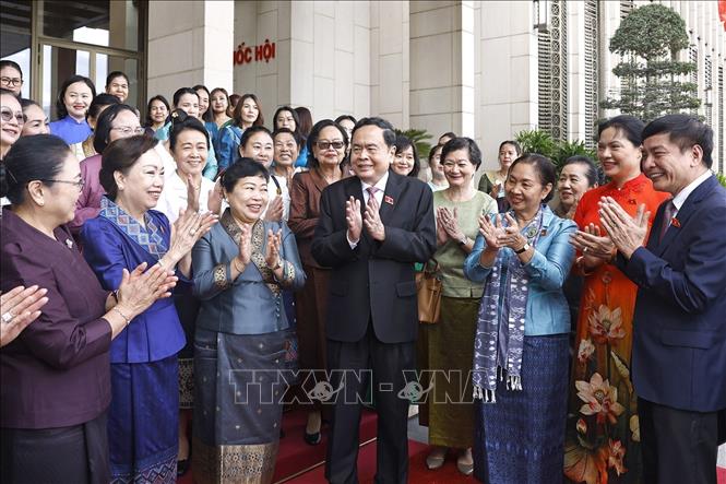 | Chủ tịch Quốc hội Trần Thanh Mẫn với đại biểu Hội Phụ nữ và nữ doanh nhân Campuchia và Lào. (Ảnh: Doãn Tấn/TTXVN) |