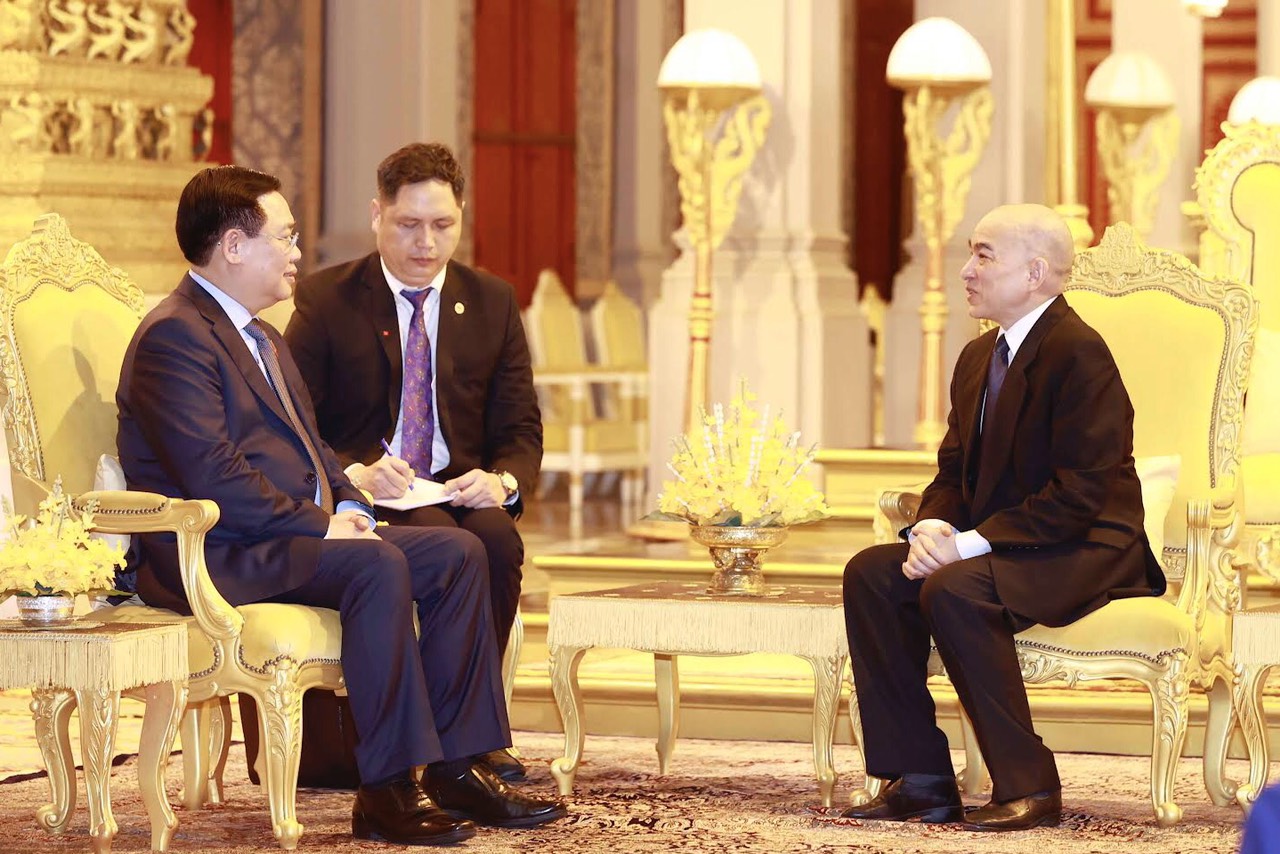 | Chủ tịch Quốc hội Vương Đình Huệ đã đến chào Quốc vương Campuchia Norodom Sihamoni tại Cung điện Hoàng gia Campuchia. Ảnh: Thành Chung |