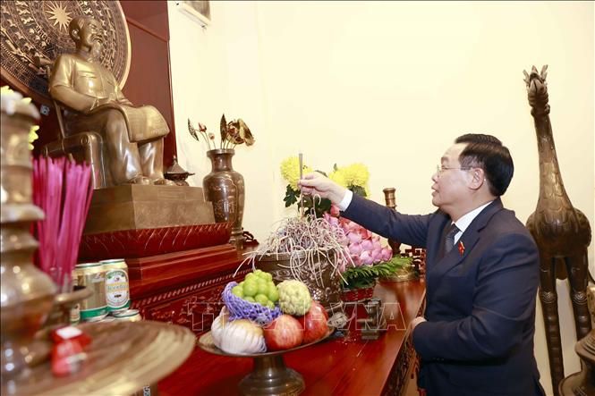 | Chủ tịch Quốc hội Vương Đình Huệ dâng hương Chủ tịch Hồ Chí Minh tại Đại sứ quán. (Ảnh: TTXVN) |