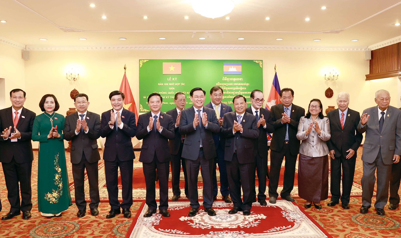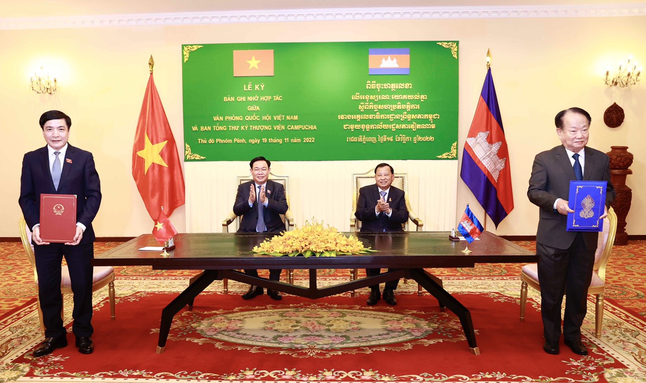 Sau cuộc hội kiến, Chủ tịch Quốc hội Vương Đình Huệ và Chủ tịch Thượng viện Campuchia Samdech Say Chhum đã chứng kiến Lễ ký thoả thuận hợp tác giữa Văn phòng Quốc hội Việt Nam và Ban Thư ký Thượng viện Campuchia./.
