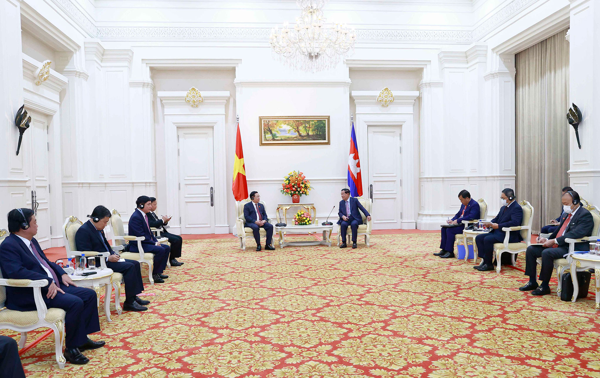 Tại cuộc hội kiến, Thủ tướng Hun Sen nhiệt liệt hoan nghênh chuyến thăm chính thức Campuchia đầu tiên của Chủ tịch Quốc hội Vương Đình Huệ, đánh giá chuyến thăm không chỉ góp phần củng cố quan hệ hữu nghị và hợp tác toàn diện giữa hai nước mà còn thể hiện sự ủng hộ mạnh mẽ của Việt Nam dành cho vai trò Chủ tịch ASEAN và AIPA của Campuchia năm 2022. Thủ tướng Hun Sen đánh giá cao những thành tựu to lớn của Việt Nam trong thời gian qua, nhất là phục hồi và tăng trưởng kinh tế sau đại dịch COVID-19 và phục hồi tăng trưởng kinh tế.